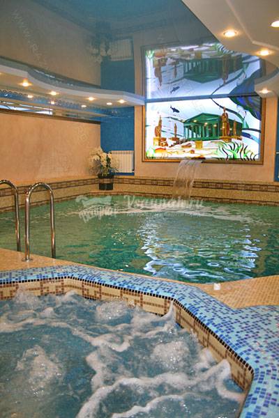Бассейн, Размеры (Ш x Д x Г), м: 4 x 4 x 1.6, Теплый бассейн, Гейзер, Водопад, Подсветка,